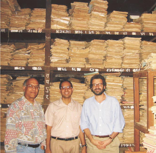 Neil Gershenfeld (right) visits officials in the new Indian state of Chattisgarh to discuss applying information technology for handling local land records.