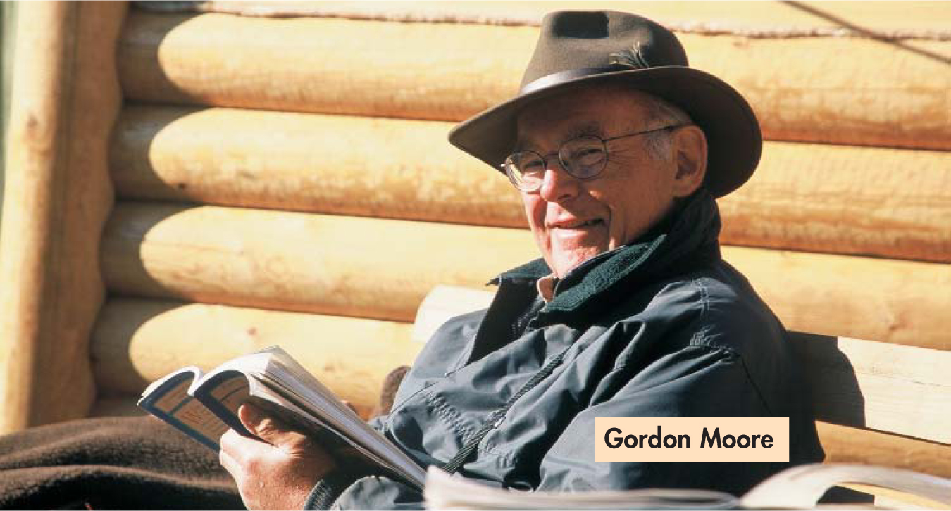 Gordon Moore does not bear the mantle of Nobel laureate like his former boss William Shockley, nor does he share the patent for the invention of the integrated circuit with his business partner Robert Noyce, with whom he cofounded Intel Corp. Rather, he is best known for Moore’s law—his prediction in the 1970s that transistor density on a chip would double roughly every two years—a pace the semiconductor industry still pushes to stay ahead of. Moore finds it “ridiculous” that his legacy should be defined by that prediction. “I think the success of Intel has to be the high point of my career,” he says.