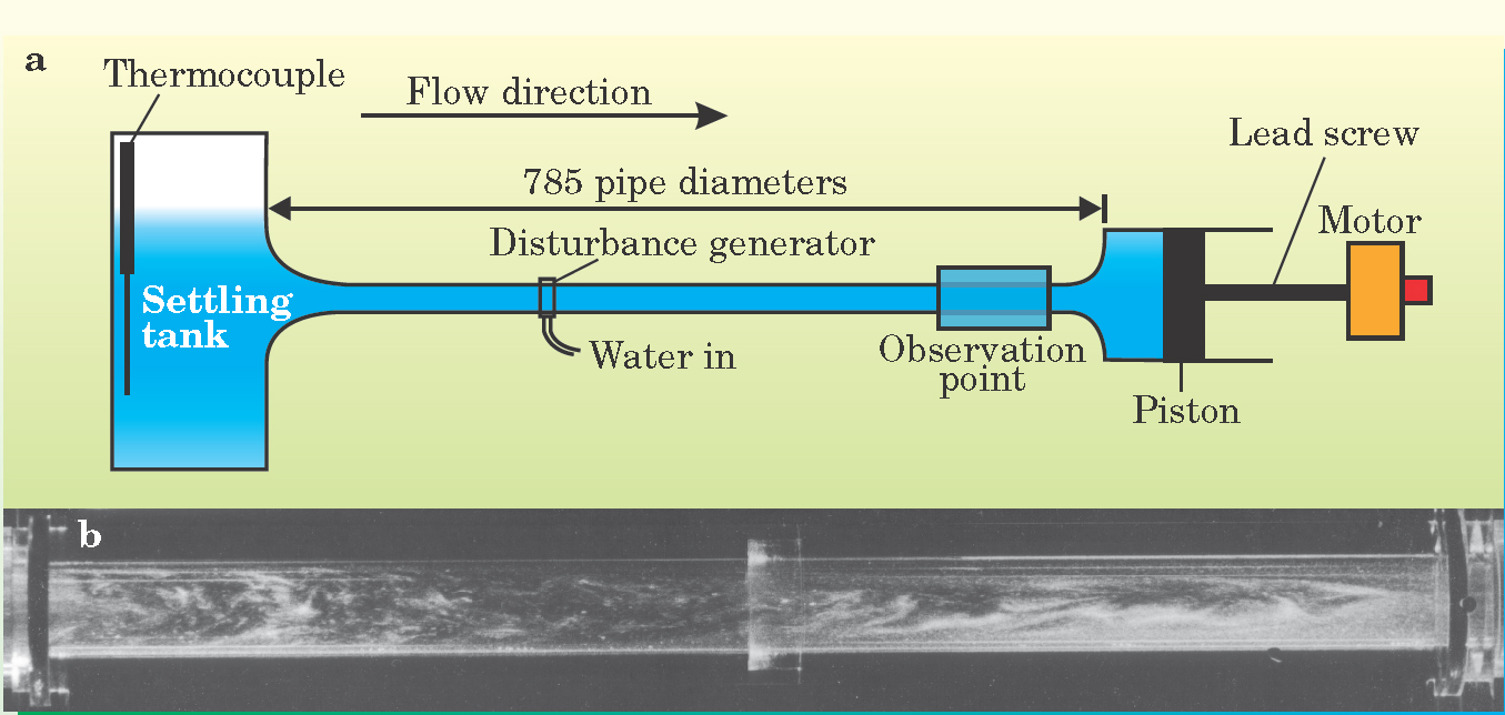 Understanding the nature of the transition to turbulence has been an ongoing quest ever since Reynolds’s first experiments (and was the subject of Werner Heisenberg’s PhD thesis in 1923). For pipe flow, the underlying Navier–Stokes equations, which describe the fluid dynamics of a system, have a laminar solution that’s been found numerically to be stable for all Reynolds numbers. Indeed, in exquisitely controlled experiments, laminar flow at Reynolds numbers up to 100 000 has been observed.