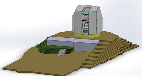 The current conception of the Eastern Anatolia Observatory telescope, dome, and related facilities.