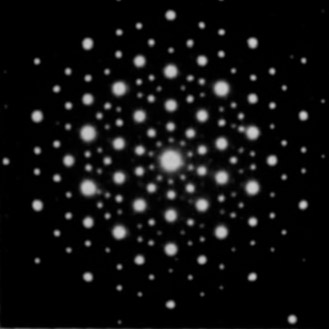 Figure 1. The electron diffraction pattern generated by Dan Shechtman’s Al6Mn quasicrystal along an axis of fivefold symmetry. (Adapted from ref.