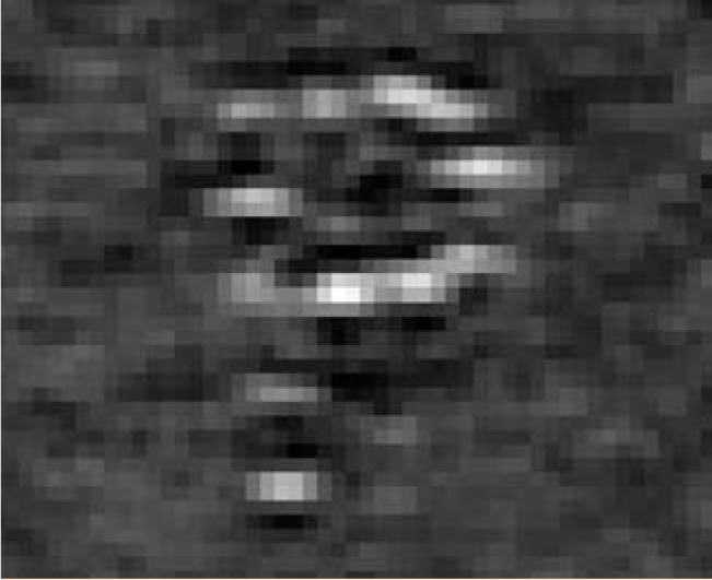 Thirteen holes, each 0.5 mm in diameter, form the letter P, which can be seen in this test image. The field of view is about 1 cm square.