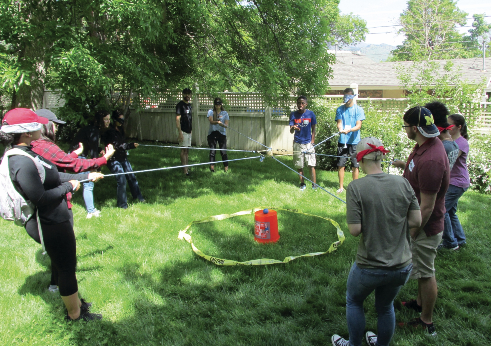 Leadership training exercises at the Significant Opportunities in Atmospheric Research and Science mentoring program in Boulder, Colorado, are a way for participants to get to know each other. This group activity took place on 22 May 2018.