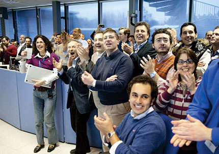 Their film, Particle Fever, follows six physicists (including Kaplan) from before the LHC turned on in 2008, through the jubilation of the first circulating beams, the setbacks when the LHC hit trouble, the first high-energy proton–proton collisions (see photo), to the spotting of the Higgs particle and physicists beginning to wrap their heads around the new discoveries. (See, for example, Physics Today, October 2009, page 25