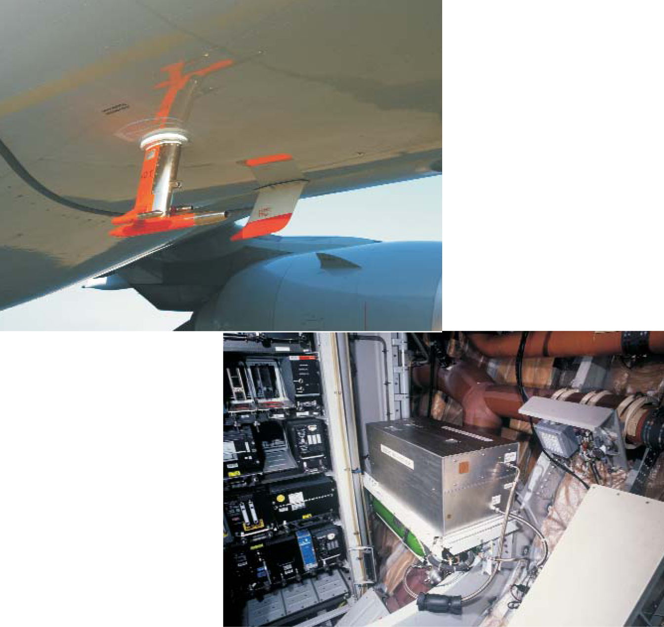 The air inlet system on the belly of the Lufthansa jet that takes data for CARIBIC is roughly 30 cm tall and has three intake probes, one each for water vapor and ice crystals, trace gases, and aerosols. MOZAIC’s instruments, such as this module (below) for measuring nitrogen oxide, fly continuously and are swapped out every six weeks for servicing.