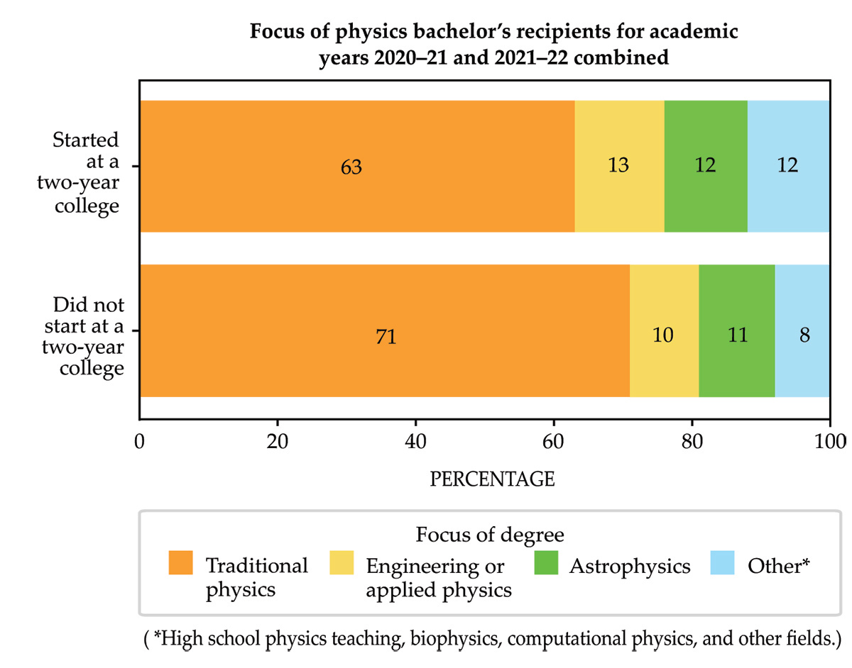 (Figure adapted from J. Pold, P. Mulvey, Physics Bachelors: Two-Year Colleges as a Starting Point, American Institute of Physics, 2025