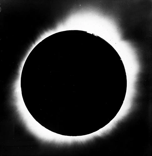 This photograph of the Sun’s corona was taken by Mary Calvert and E. E. Barnard during the Yerkes Observatory expedition to Green River, Wyoming, for the June 1918 total solar eclipse. They obtained the image through clouds using a 61.5-foot coelostat telescope with a 6-inch lens and a rotating mirror that allowed the astronomers to continuously monitor the path of the Sun during the eclipse. Because of its high quality, the image was used to produce slides that were employed for educational purposes across the country. (Courtesy of the University of Chicago Photographic Archive, apf6-02119, Hanna Holborn Gray Special Collections Research Center, University of Chicago Library.)