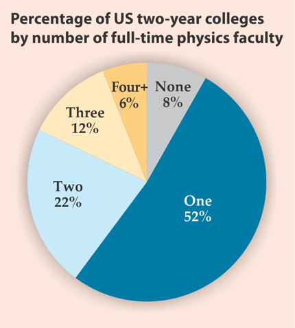 Percentage of US two-year colleges by number of full-time physics faculty