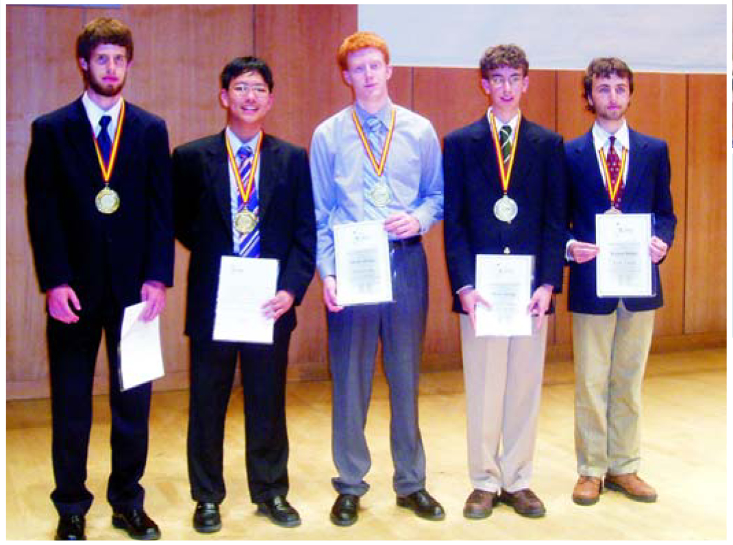 All five US competitors won medals: Menyoung Lee of Alexandria, Virginia, and Eric Mecklenburg of Gates Mills, Ohio, earned golds; Timothy Credo of Aurora, Illinois, and Nickolas Fortino of Andover, Massachusetts, garnered silvers; and Daniel Whalen of Andover won a bronze. The US team was sponsored by the American Association of Physics Teachers and the American Institute of Physics.