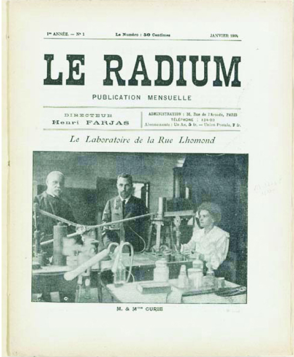 Le Radium , the first journal to focus on radium, launched in 1904 and featuring Henri Becquerel (left) and Pierre and Marie Curie on the cover, sold for $2868 at a Christie’s auction.