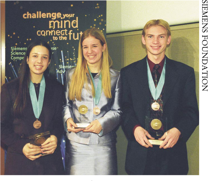Top honors in the 2001 Siemens Westinghouse Science and Technology Competition went to Shira Billet (left) and Dora Sosnowik (team winners) and Ryan Patterson (individual winner).
