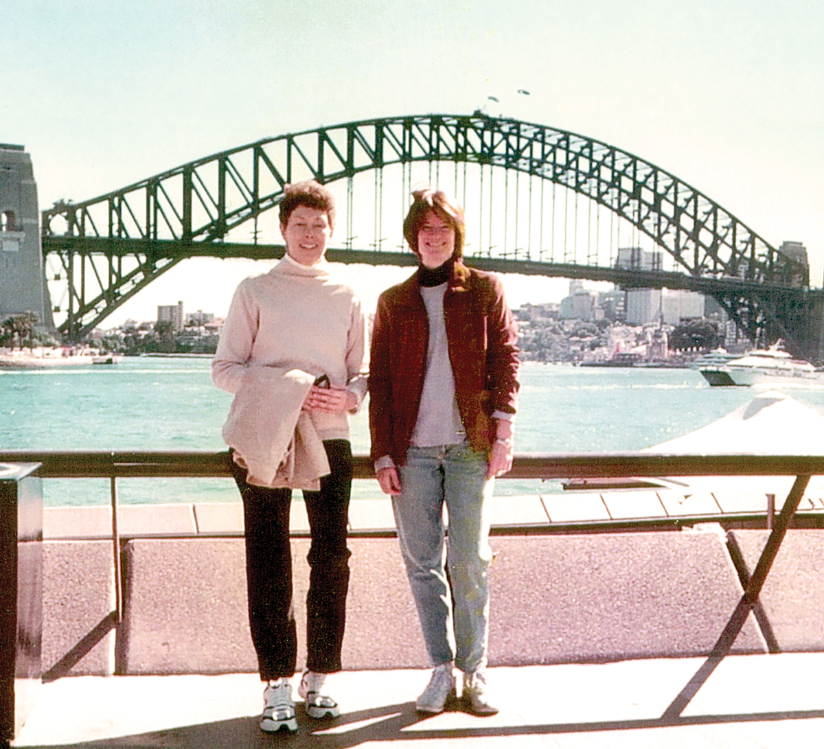 Tam O’Shaughnessy (left) and Ride, pictured here in Sydney, Australia, in 2004, were life and business partners. Friends since childhood, they authored science books together and ran the company Sally Ride Science. (Photo courtesy of Tam O’Shaughnessy.)