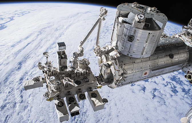 The ISS-CREAM detector is the rightmost rectangular shape at the bottom of the photograph. To its right is the Japanese module of the International Space Station.