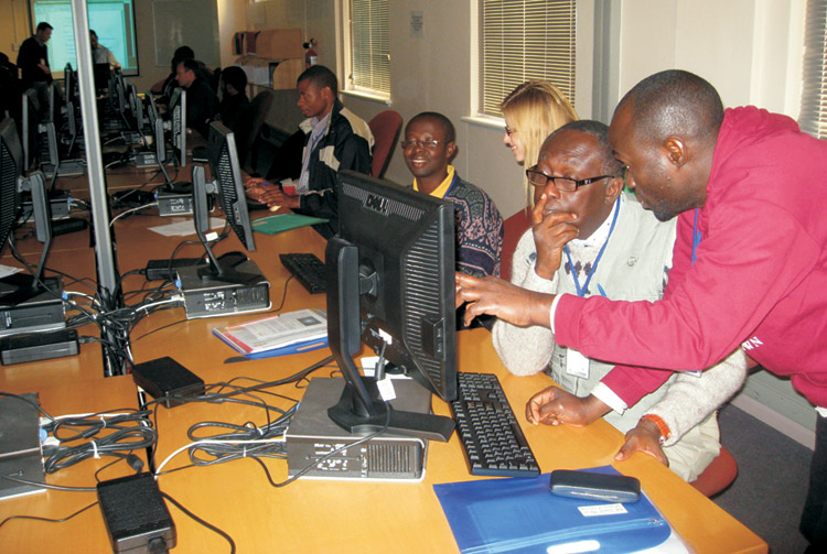 Participants at last July’s African School on Electronic Structure Methods and Applications logged long hours and didn’t want to leave the lab in the evenings. (Image courtesy of Richard Martin.)