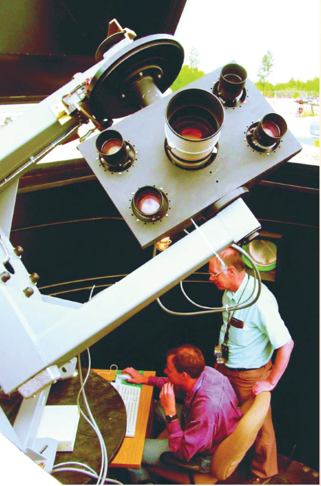 RAPTOR (Rapid Telescopes for Optical Response) scans the skies and focuses on optical transients. James Wren (seated) and Don Casperson are among the dozen or so Los Alamos National Laboratory scientists involved in RAPTOR.