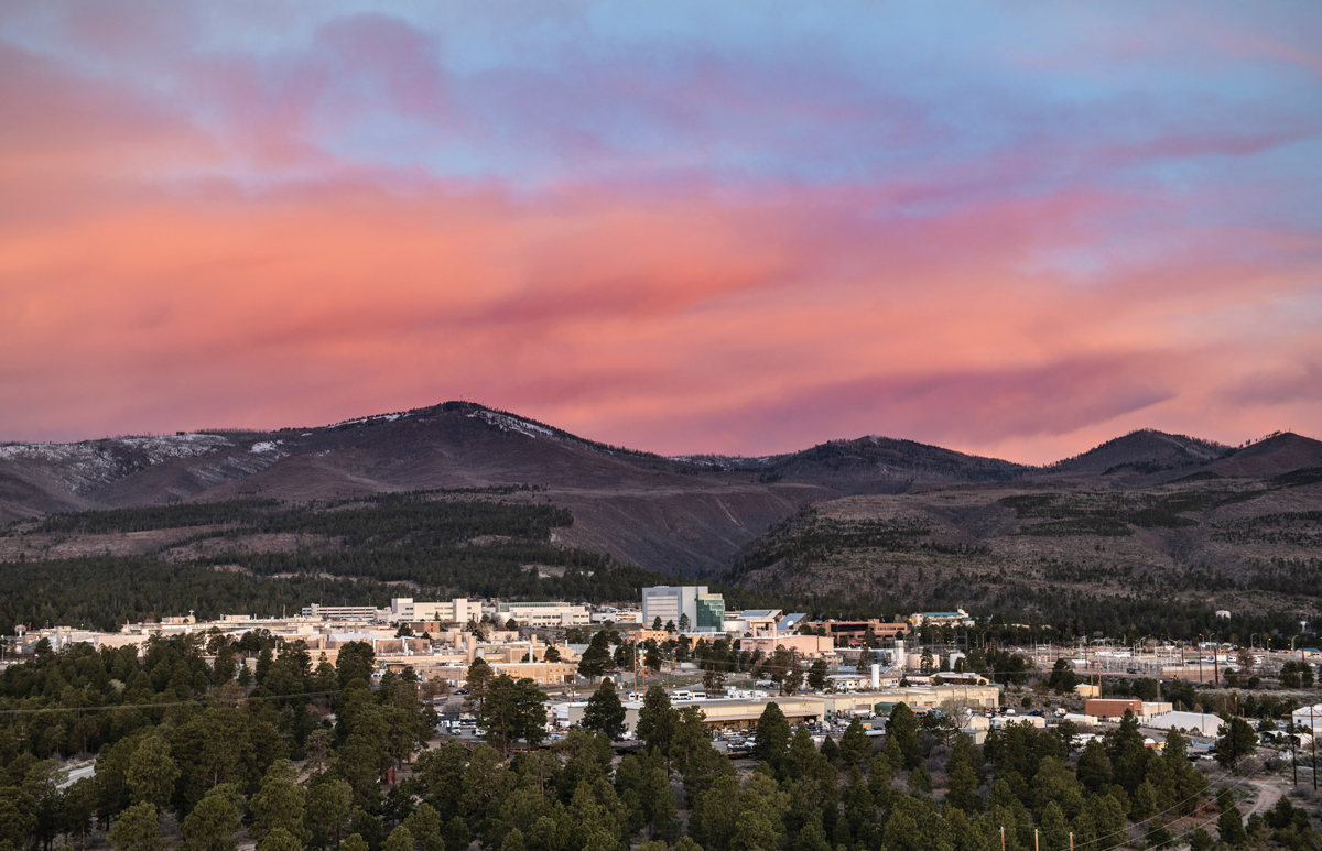 An early-morning aerial view of Los Alamos National Laboratory in April 2019. (Photo from Los Alamos National Laboratory.)