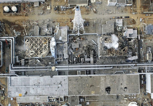 A photo taken from a small, unmanned airplane on 20 March shows damage to the reactors at the Fukushima Daiichi powerplant in the wake of the 11 March earthquake and tsunami.
