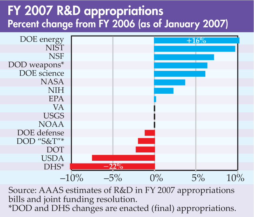 For most of January, science advocates in Washington, DC, were in a state of barely controlled panic as it became increasingly apparent that the much-ballyhooed science funding increases contained in the Bush administration’s fiscal year 2007 budget proposal weren’t going to happen. The FY 2007 budget, caught between the inaction of the Republican-controlled 109th Congress and the “it’s not our budget” view of the 110th Democratic Congress, was dead.