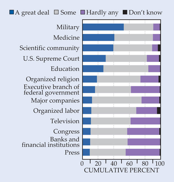 The scientific community scores high on the scale of professionals that the US public trusts.