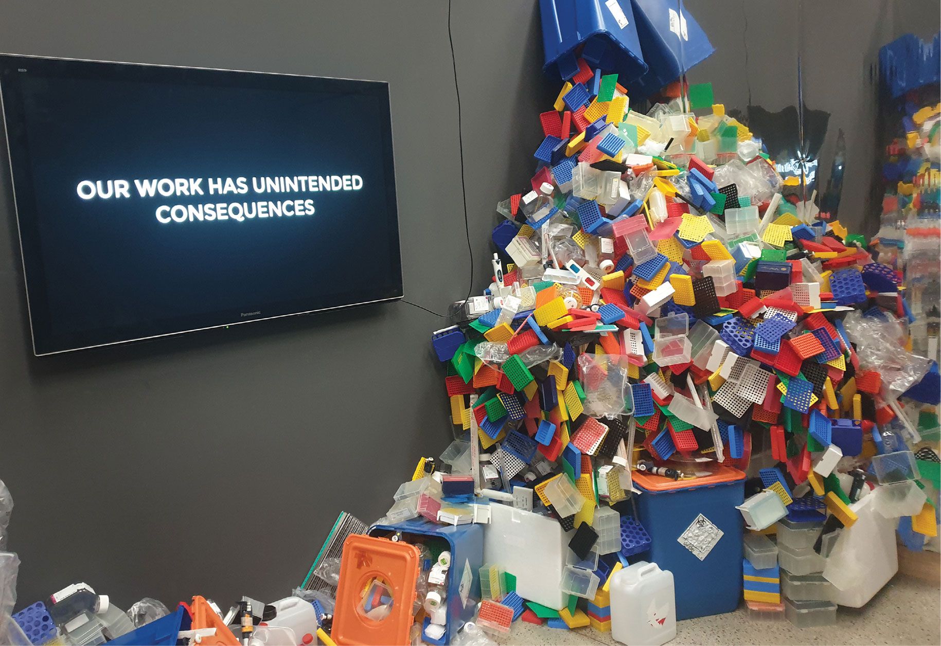 Plastic consumables pile up as waste in many wet labs. An exhibition last winter at the Lakenhal Museum in Leiden, the Netherlands, aimed to motivate scientists and the public to find ways to make science more sustainable.