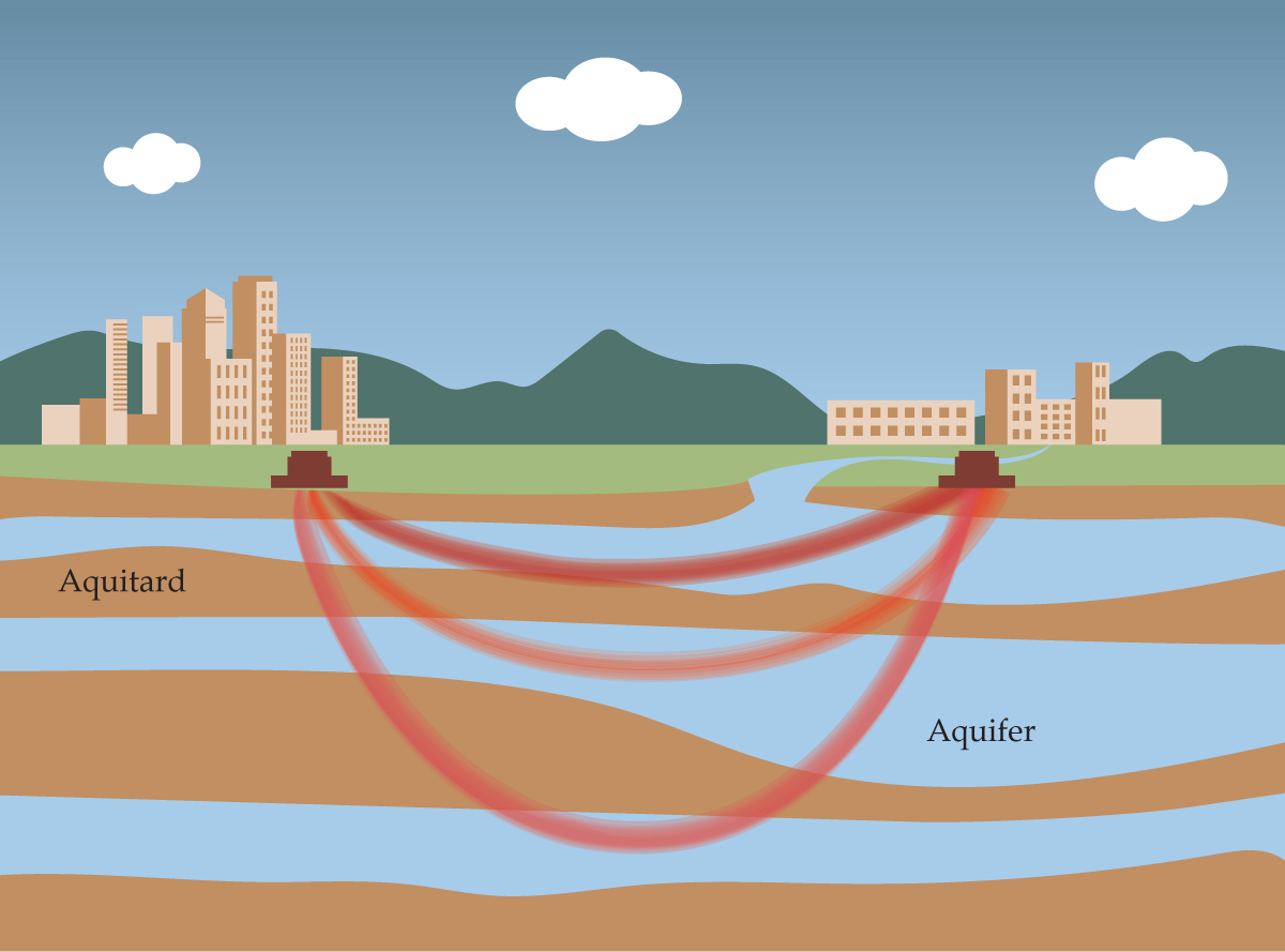 The conventional approach to groundwater monitoring—drilling wells and observing the water level in them—provides only incomplete information. Unlike a surface lake, whose water level everywhere can be gauged from a measurement at a single point, groundwater inhabits a complex, unknown network of layers and channels. As shown in figure