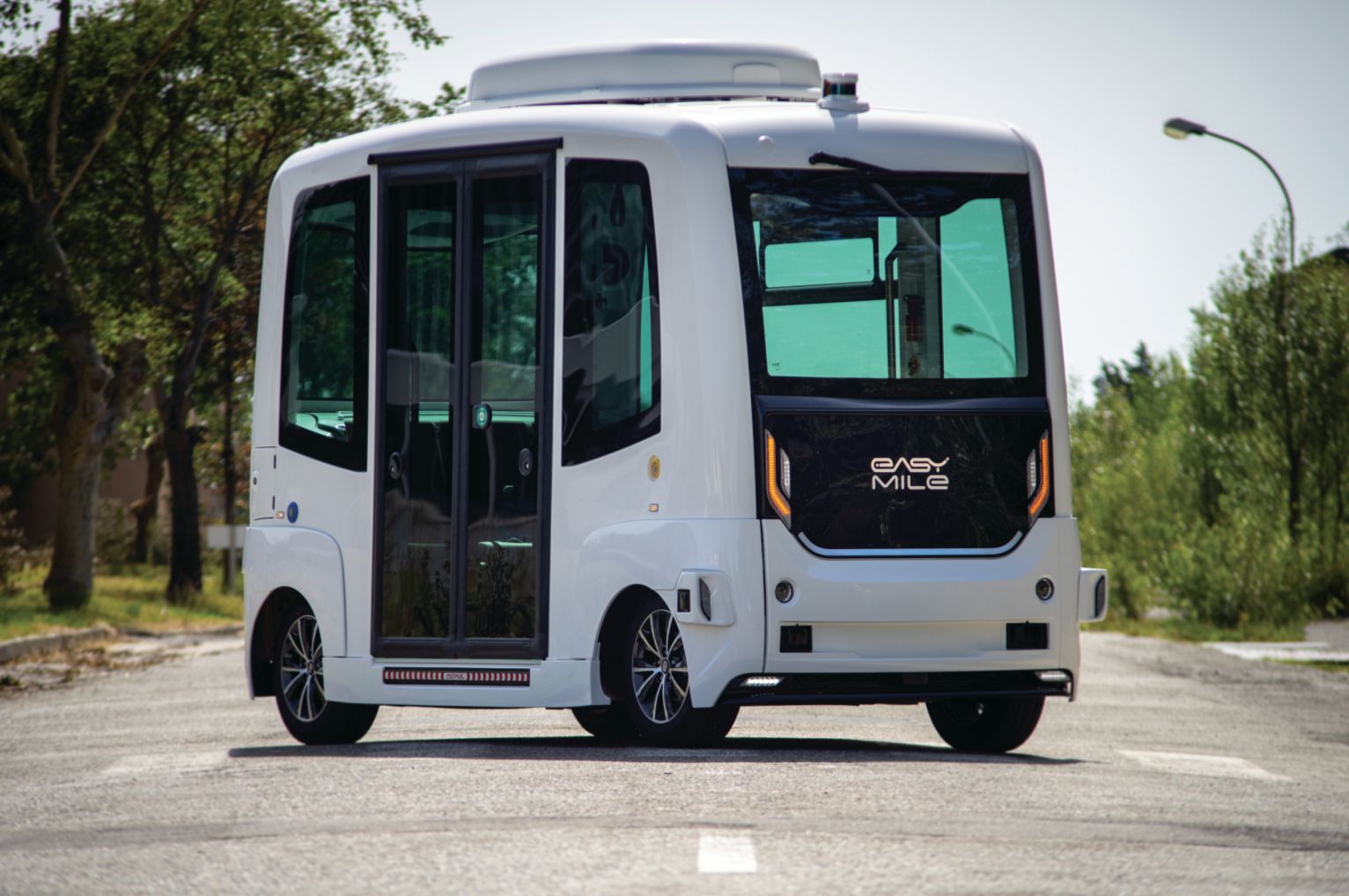 A self-driving shuttle identical to the one shown here by EasyMile, a company headquartered in Toulouse, France, was tested earlier this year by the Regional Transportation District in Denver, Colorado. Snow and heavy rain confused the onboard sensors, disrupting the shuttle service.