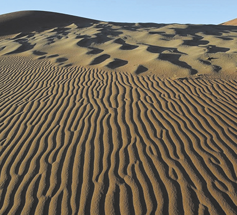 Intermediate-scale megaripples separate ripples (foreground) and giant dunes (background) in Israel’s arid Negev region. (Image courtesy of Hezi Yizhaq.)