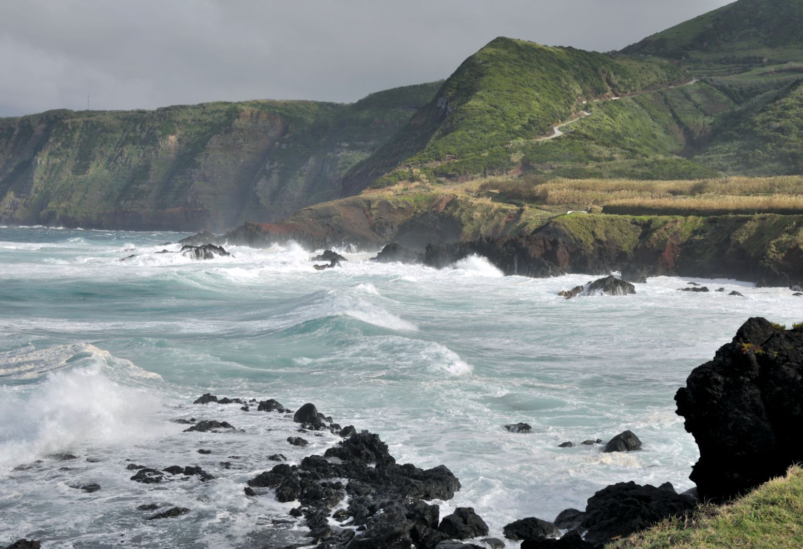 Ocean waves interacting with each other produce a second-order pressure variation that doesn’t attenuate with ocean depth. The waves exert vertical forces on the seafloor that generate seismic activity in the form of Rayleigh waves, which oscillate in a direction orthogonal to their propagation. But that theory cannot explain the observation in the ambient seismograph record of Love waves, which exhibit shear motion. (Image by Hansueli Krapf, CC BY-SA 3.0