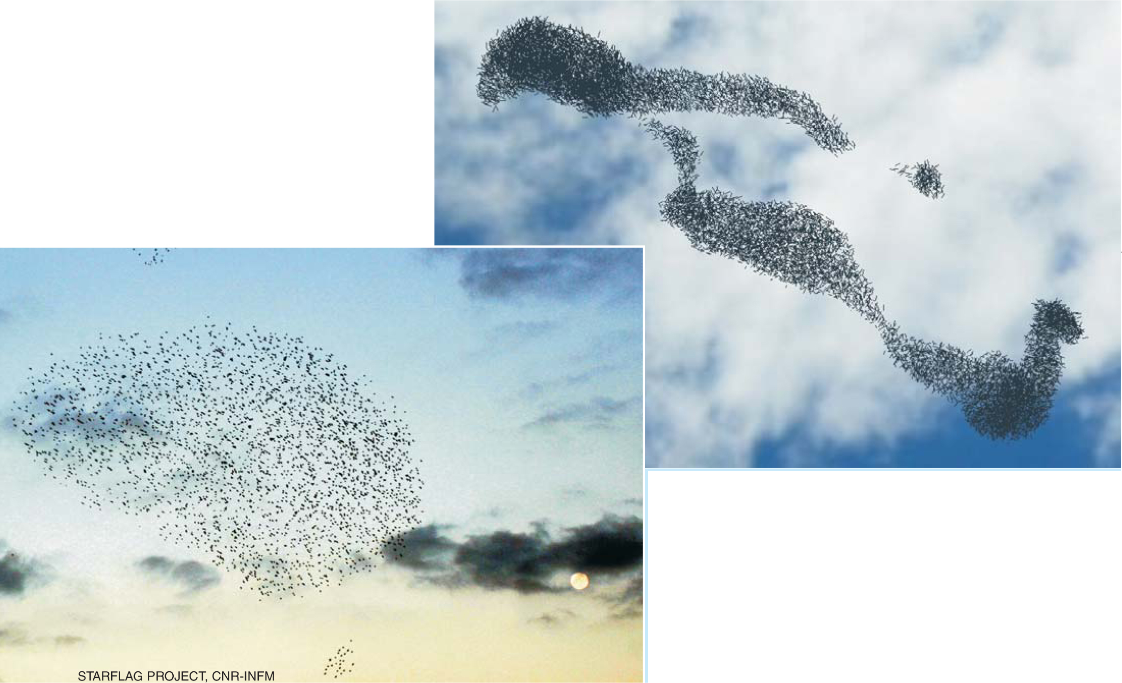 At dusk each winter evening, millions of starlings fly in from the countryside to their roosting sites in Rome and, before settling into trees for the night, “they spend something like 20 minutes doing these incredible aerial displays. It’s a truly amazing sight,” says Andrea Cavagna, a statistical physicist at Italy’s National Institute for the Physics of Condensed Matter (INFM). “If you watch a flock of starlings under attack by a predator, they split, merge, and do all these incredible maneuvers to confuse the predator. How can they keep cohesion in the face of that strong perturbation—the attack?”