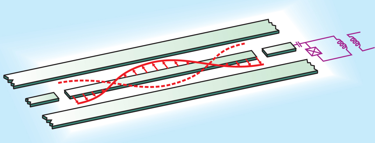 Figure 1 depicts the basic components used in both experiments, except that the Yale experiment had a second qubit. The qubit is a Josephson junction, consisting of two superconductors separated by a slab of insulator thin enough for Cooper pairs to tunnel across. Experimenters can design the circuit connections for such junctions so that they form two-level systems. In a mode known as the charge mode, for example, the ground or excited level corresponds to the absence or presence of a Cooper pair; in the phase mode, the two levels correspond to phase differences across the junction. (See the article by J. Q. You and Franco Nori in Physics Today, November 2005, page 42