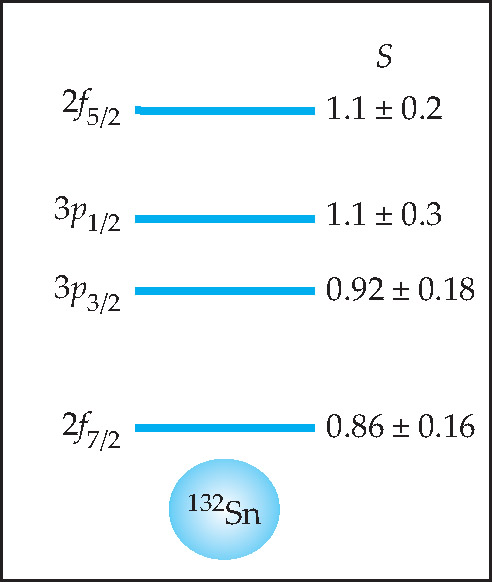 “That’s even better than one gets for 208 Pb, the much studied paradigm of doubly magic nuclei,” says Nazarewicz. “So 132Sn may be the most magic of them all.” For the third and fourth valence-neutron states of 208 Pb, by comparison, Pb-target experiments find that S is no bigger than 0.6.