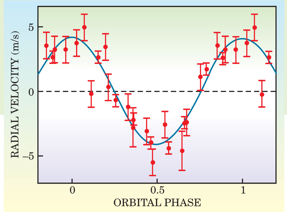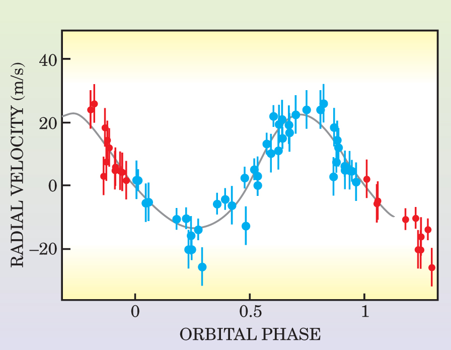 A week later at NASA headquarters, Paul Butler (Carnegie Institution of Washington) and Barbara McArthur (University of Texas) announced the discovery of two more planets with Neptune-like masses. McArthur’s McDonald Observatory team had found an 18 M⊕ planet orbiting the Sunlike star ρ1 Cancri with a period of only 2.8 days.