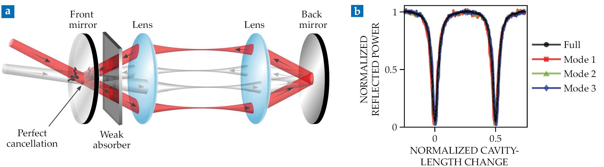 A similar strategy can boost the amount of light absorbed by any material. For a material placed in an optical cavity, light passes through it many times. And under the right conditions, nearly all the light is eventually absorbed, even by a weakly absorbing medium. Such a system is an example of what’s known as a coherent perfect absorber (CPA), which achieves its performance with the help of interference effects.