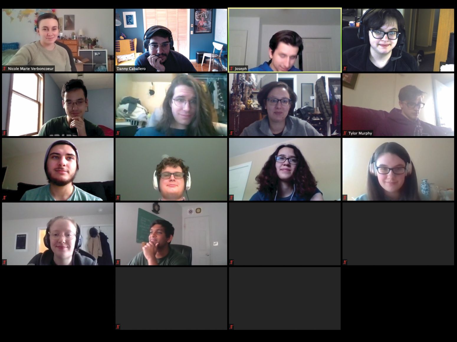 Students in Danny Caballero’s upper-division electricity and magnetism class tune in via Zoom.