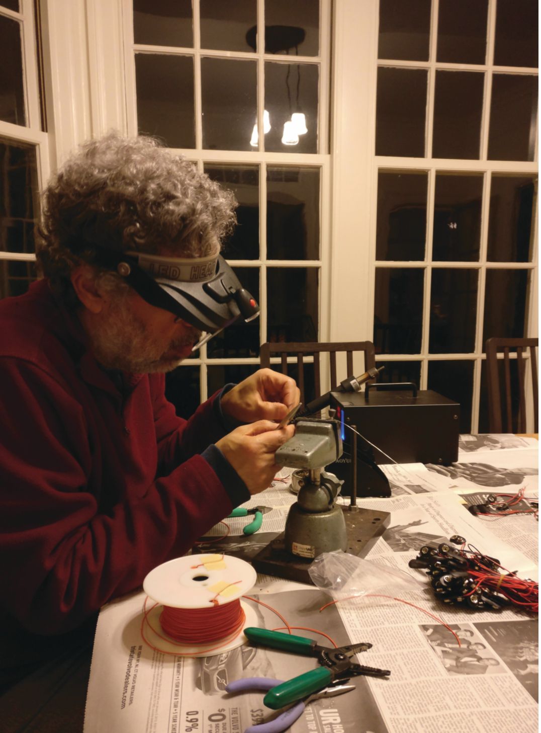 Joel Fajans solders components for kits with microcontrollers, resistors, and other circuit parts for an advanced laboratory class at the University of California, Berkeley. Fajans delivered the kits to his 55 students, who had scattered over three continents when COVID-19 shuttered the university. From home, the students built amplifiers and measured and analyzed noise to obtain Boltzmann’s constant.