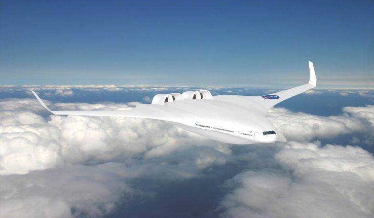 A passenger plane as conceptualized by researchers at MIT and NASA would exploit nanomaterials to cut weight, monitor performance to reduce emissions and improve safety, resist ice accretion, and change aerodynamic properties based on atmospheric conditions.