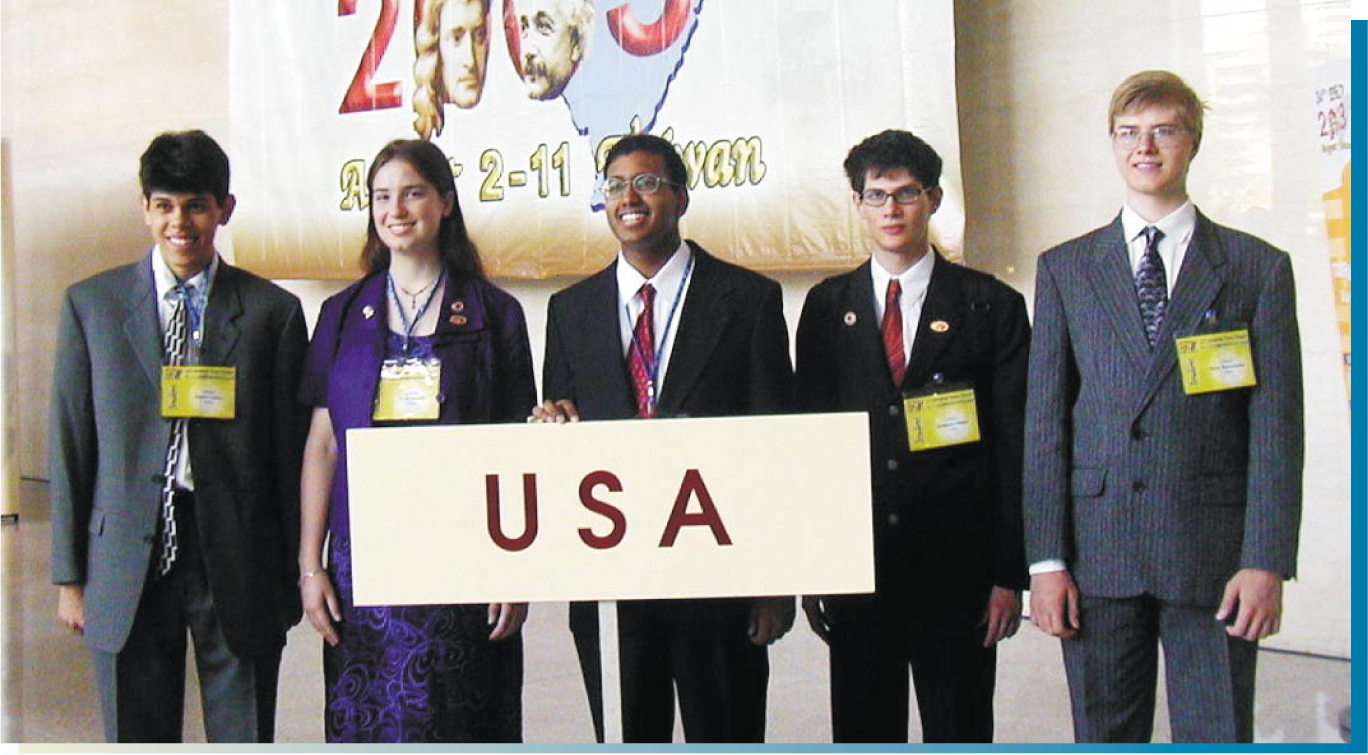 The winning 2003 US physics team includes (left to right) Daniel Gulotta, Emily Russell, Chintan Hossain, Immanuel Buder, and Pavel Batrachenko.