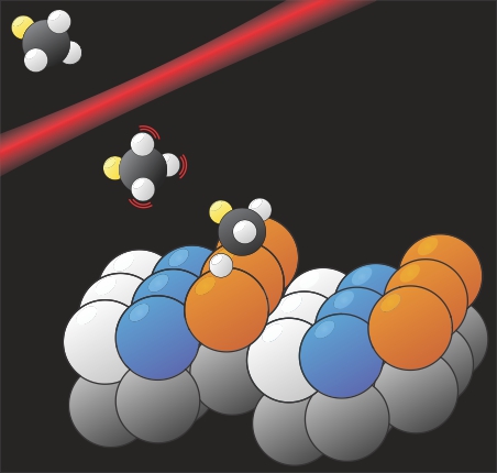 The new work is part of an ongoing effort to control every aspect of a surface reaction, including the kinetic energy and quantum state of the reactant species. The reactants are introduced to the surface not as a uniform gas but in a molecular beam whose speed can be tuned and whose passage through an IR laser beam can excite specific molecular vibrations. The desirability of such control in experiments on CH4 dissociation came to light in the early 2000s in experiments by the groups of Beck and Arthur Utz at Tufts University. 3 Vibrationally excited molecules were more likely to dissociate than fast-moving molecules with the same amount of energy. How that vibrational energy is partitioned among different normal modes also had a significant effect.