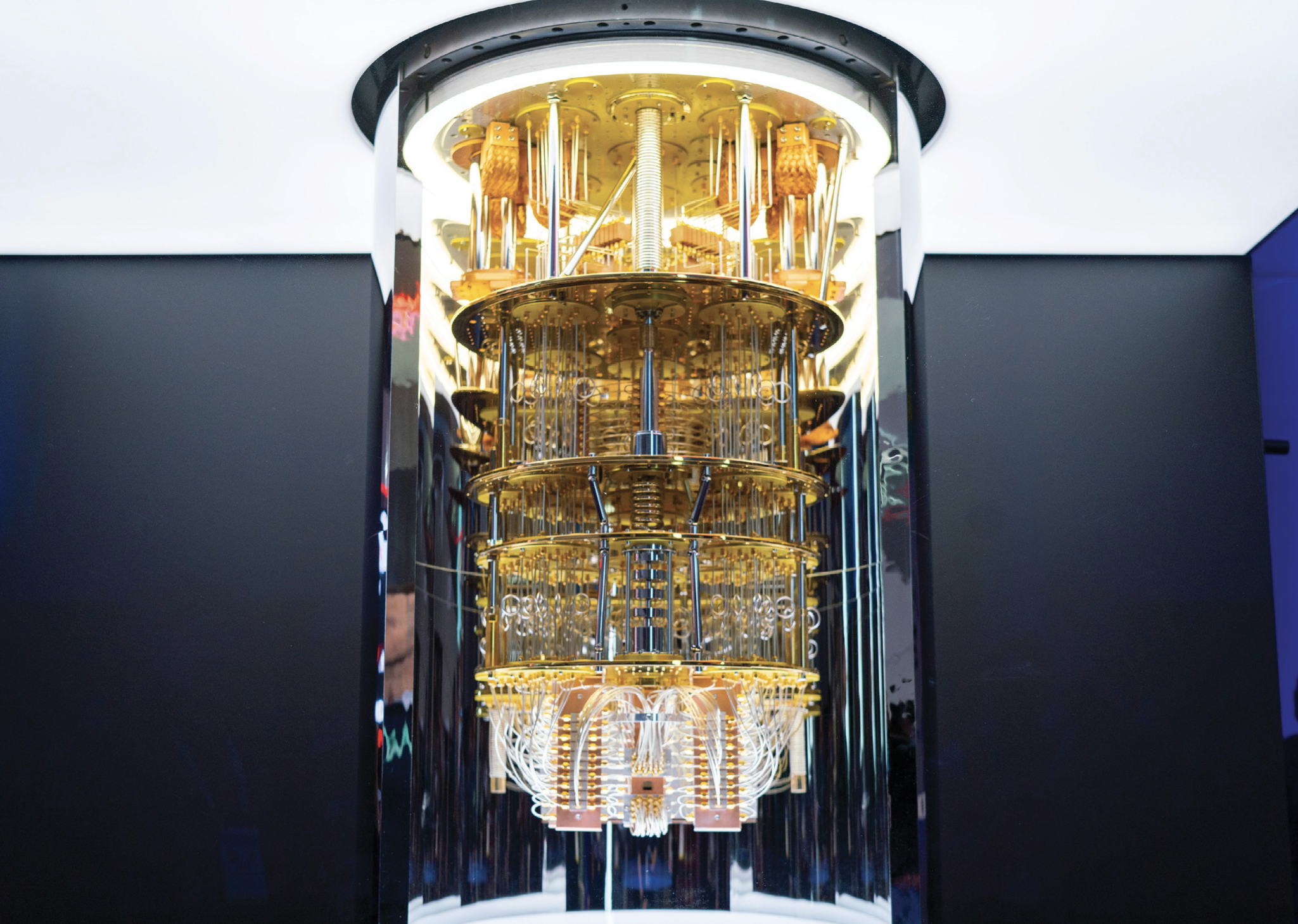A refrigeration system houses an IBM Q System One quantum computer. (Photo from IBM.)