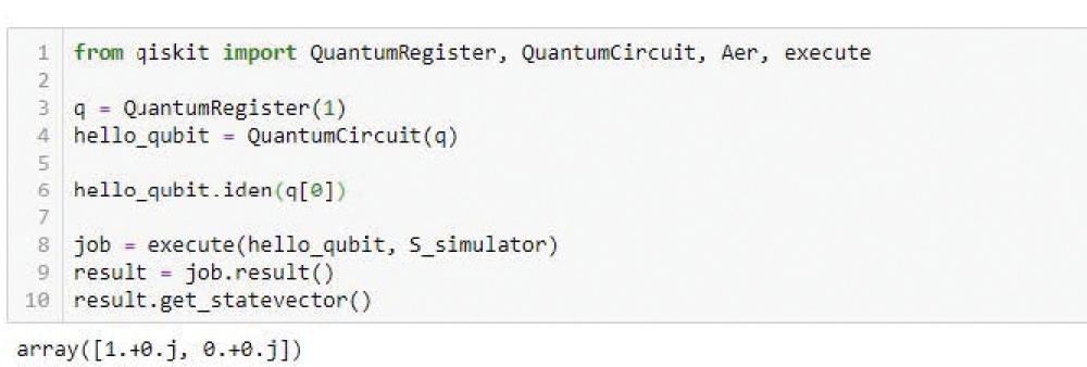 This short qiskit algorithm, akin to a “Hello, World!” program, initializes one qubit in the state |1⟩. (Image from D. Koch, L. Wessing, P. M. Alsing, http://arxiv.org/abs/1903.04359