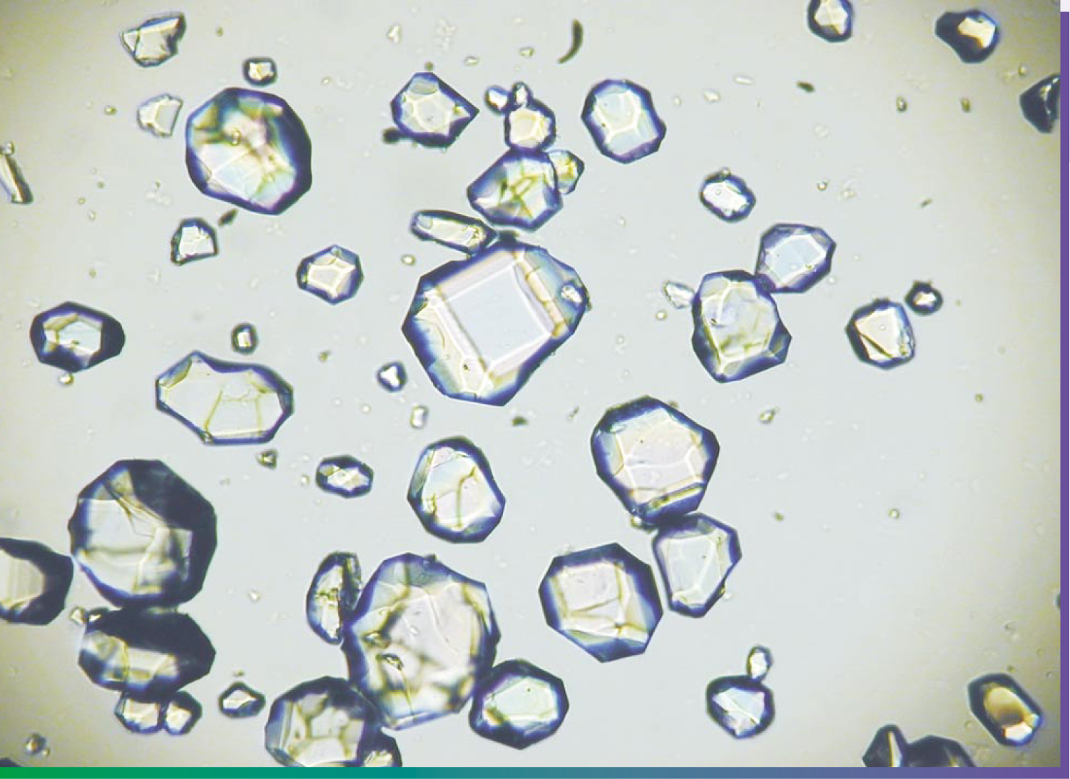 Crystals of synthetic forsterite, the magnesium-dominant member of the olivine group. Olivine is the most abundant mineral within Earth’s upper mantle.