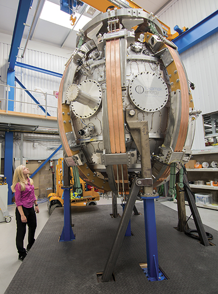 TE, founded by former scientists from the UK’s Culham Centre for Fusion Energy, and CFS, established by Whyte and five other MIT researchers, have proposed similarly sized devices. Each machine will be roughly the size of the DIII-D—the only operating tokamak in the US, located at General Atomics in San Diego, California—and will have a plasma volume of 10–20 m3. They would be considerably smaller than the Joint European Torus, located at Culham and currently the world’s largest tokamak.