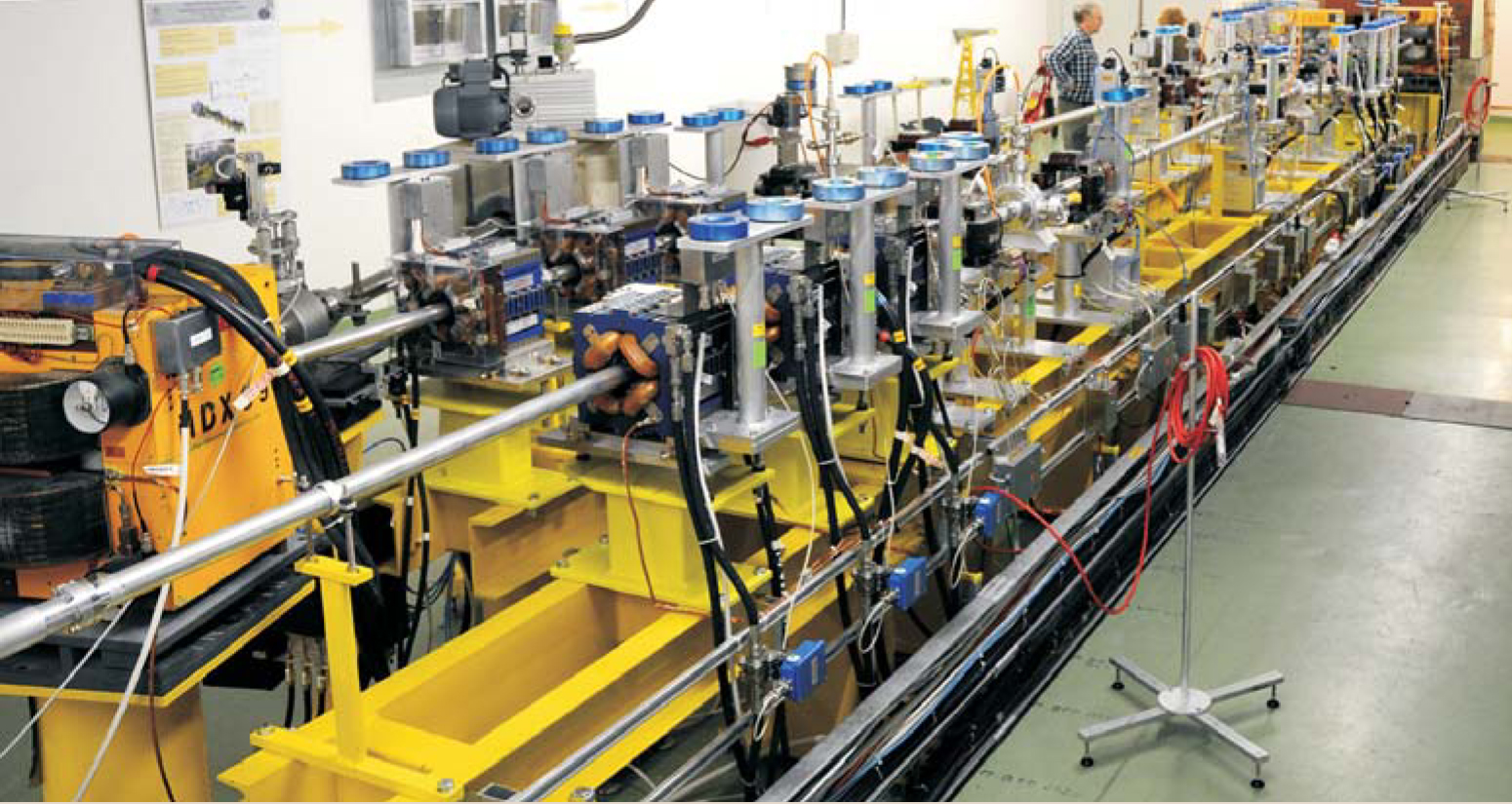 Feasibility tests for the Compact Linear Collider are in progress at CERN’s 17-meter-long two-beam test stand. A high-intensity, short-pulsed drive beam (closer beam) feeds the main beam through RF power extraction.