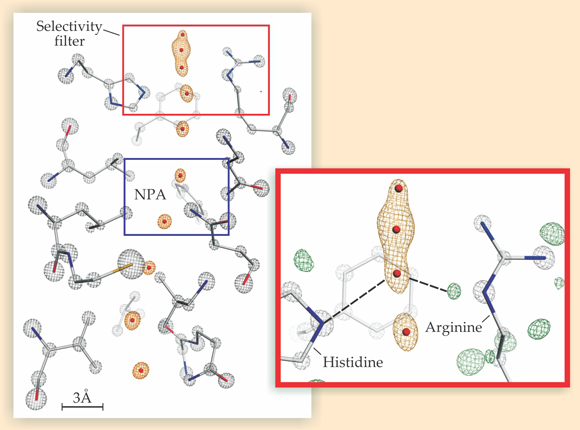 Now a collaboration led by Richard Neutze (University of Gothenburg, Sweden) and Emad Tajkhorshid (University of Illinois at Urbana-Champaign) has used x-ray crystallography to construct the most detailed picture to date of the inner workings of an aquaporin protein. 2 And that picture seems to confirm at least a partial role for the SF in aquaporin’s proton blockade.