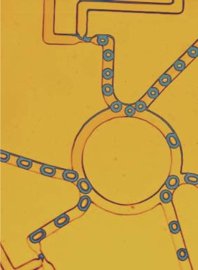 (figure 1) and the work of Neil Gershenfeld and his collaborators (figure 2) showing how digital logic can be implemented in a microfluidic device by manipulating bubbles.