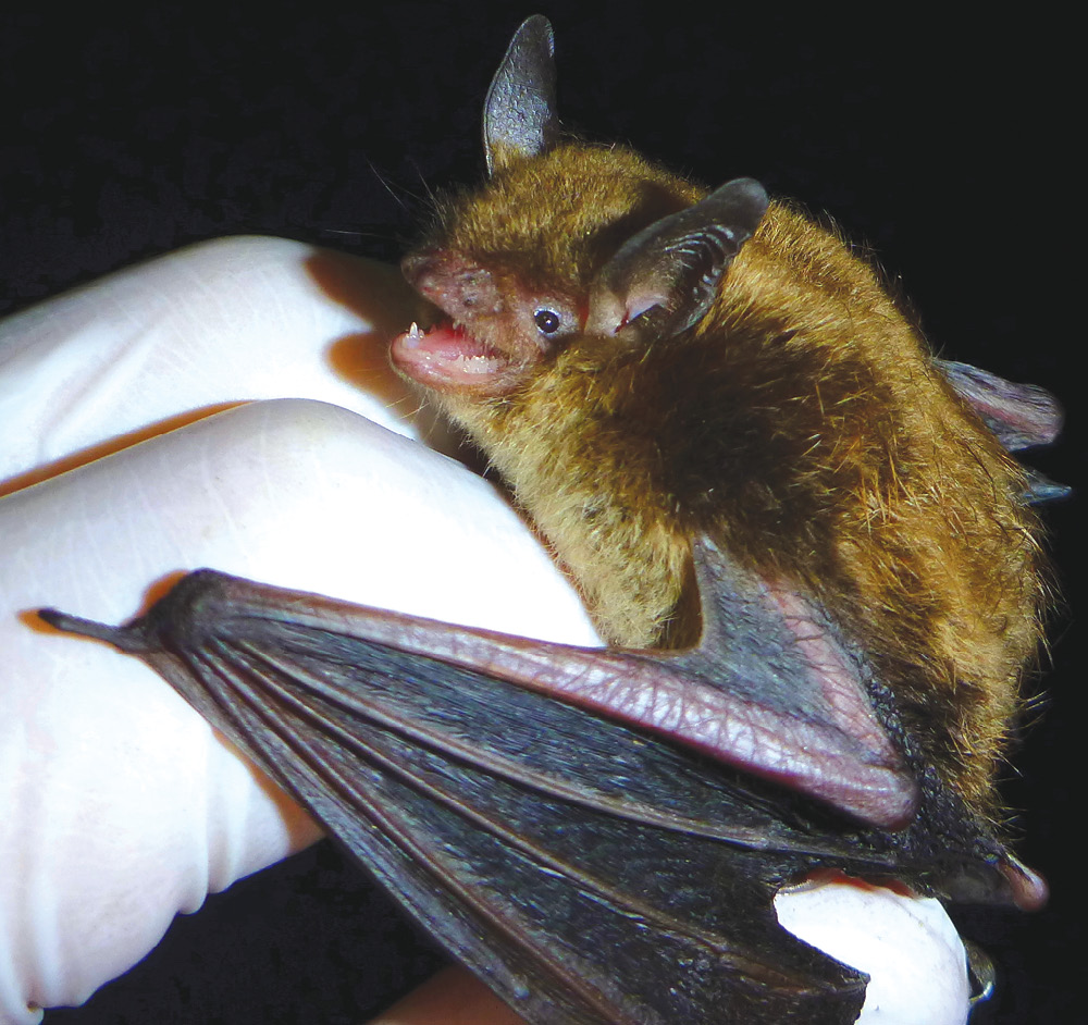 A brown bat relaxes on a perch. (Courtesy of SMBishop, CC BY-SA 3.0