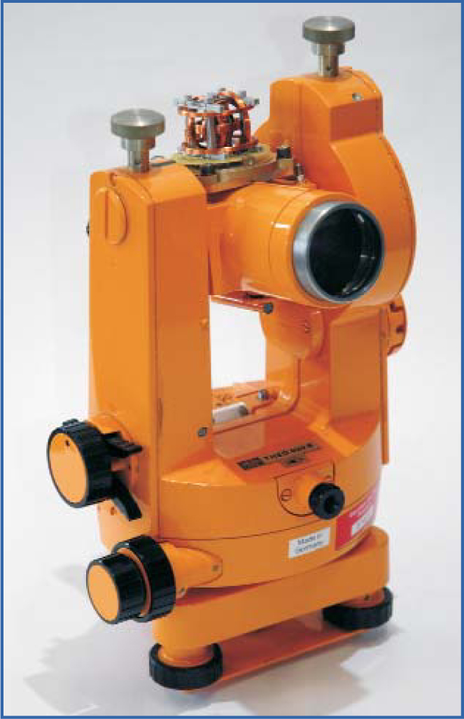 Fluxgate magnetometers can achieve a resolution of about 0.01 nT for magnetic-field components with frequencies in the range of 0–100 Hz. But magnetometers that operate continuously, such as those at magnetic observatories, are subject to offset drift, so their baseline has to be corrected. To do that, a fluxgate sensor is mounted parallel to the telescope axis of a nonmagnetic theodolite. (A theodolite is a device with a rotatable telescope; surveyors commonly use them.) Figure 2 shows the apparatus that, since 1970, has become a standard instrument for observation of the geomagnetic-field direction.