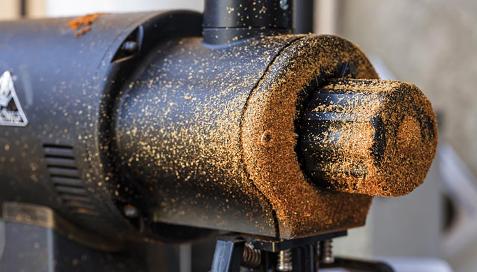 Coffee grinders in busy cafés are often coated in grounds held in place by electrostatic forces. Besides messy workspaces and increased waste, the absence of charged grounds in the brewing process may result in weaker espresso. (Photo courtesy of Robert Asami.)