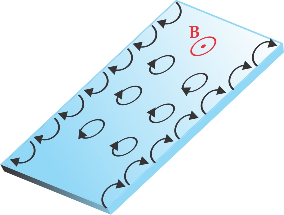Figure 1. Topological insulators. In the presence of a magnetic field B, charged particles in a topological insulator execute closed orbits inside the bulk but skip along the edge.
