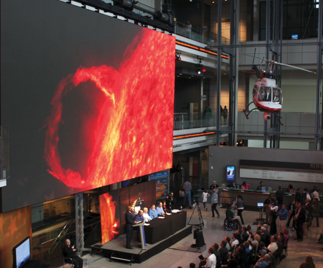 The first images taken by NASA’s Solar Dynamics Observatory are presented during a press conference in Washington, DC, in April 2010.